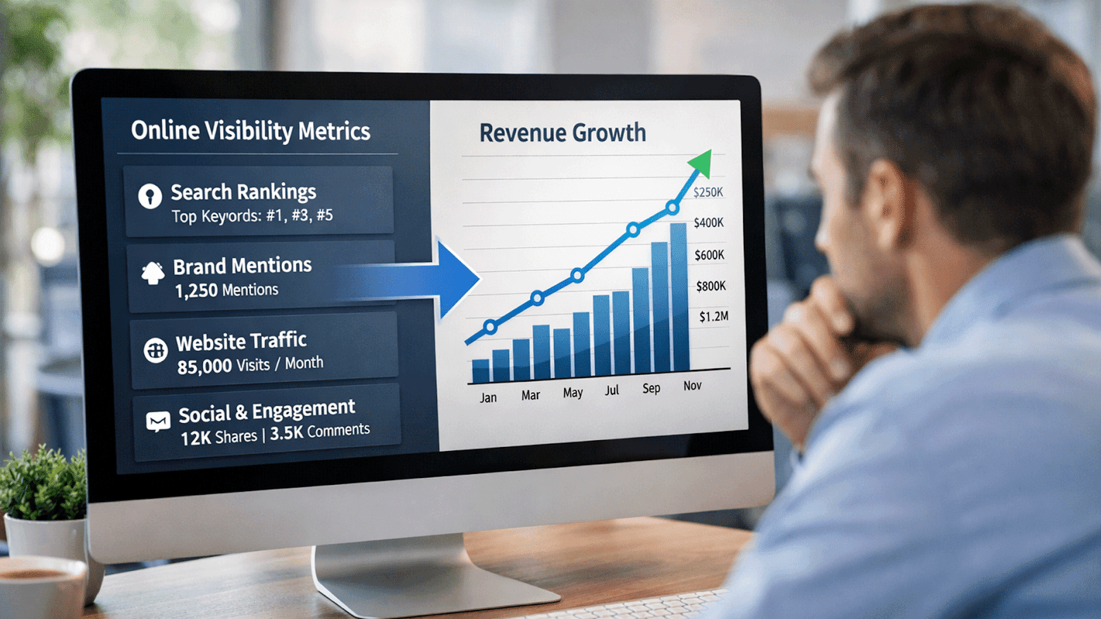 Online visibility determines whether your brand appears during high-intent searches and AI-generated recommendations. When buyers consistently see your brand in decision-stage queries, demo requests, and pipeline volume tend to rise. Visibility drives consideration, and consideration drives revenue.