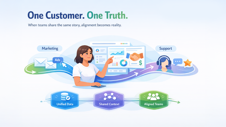Modern companies are realizing that alignment doesn’t come from more meetings or more tools. It comes from one shared system that gives every team the same view of the customer, in real time.